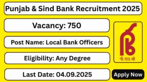 Punjab and Sind Bank, one of India’s trusted public sector banks, has officially announced recruitment for 750 Local Bank Officers (LBOs). This recruitment drive is an excellent opportunity for graduates and banking aspirants to secure a stable government banking career. The application process is open until September 4, 2025, and interested candidates must apply online through the official website.