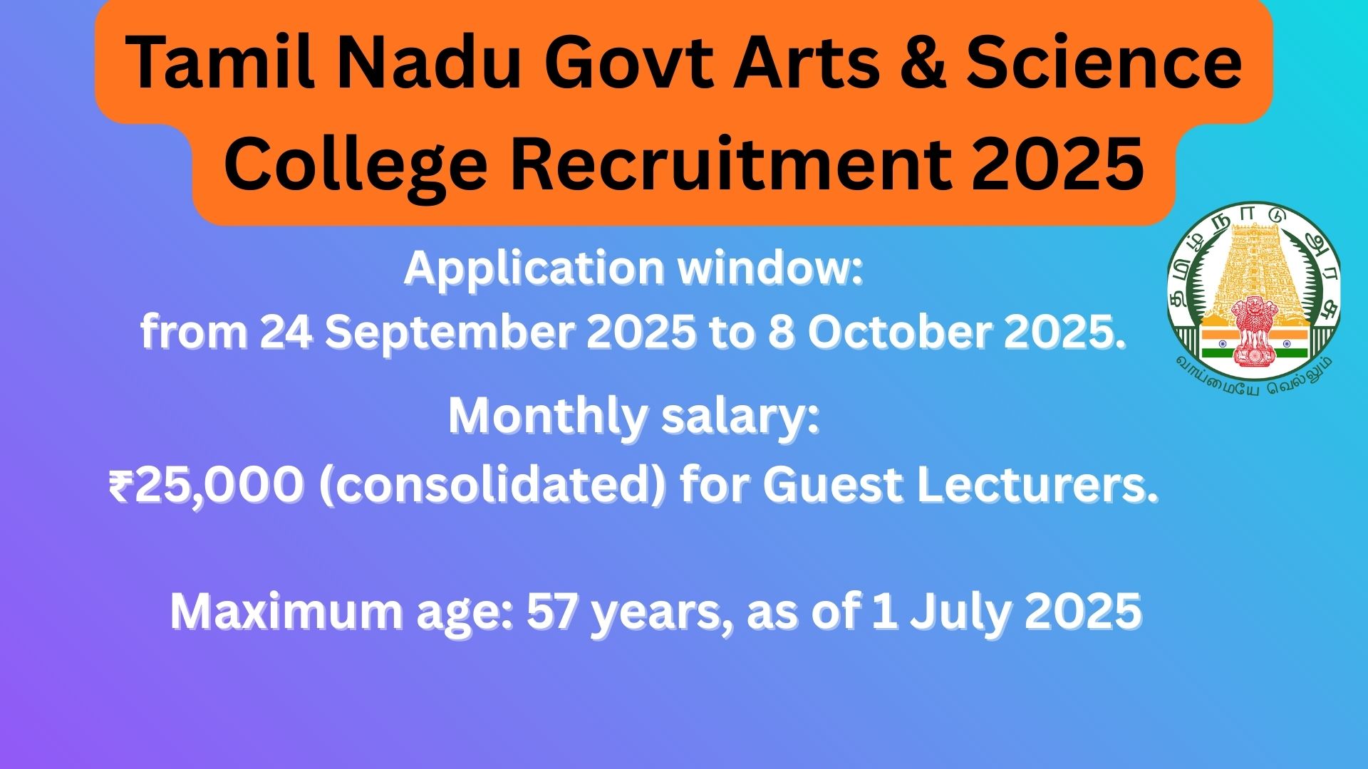 For aspirants, this recruitment is a golden chance to begin their teaching career in a prestigious government institution, while contributing to Tamil Nadu’s rich academic culture.